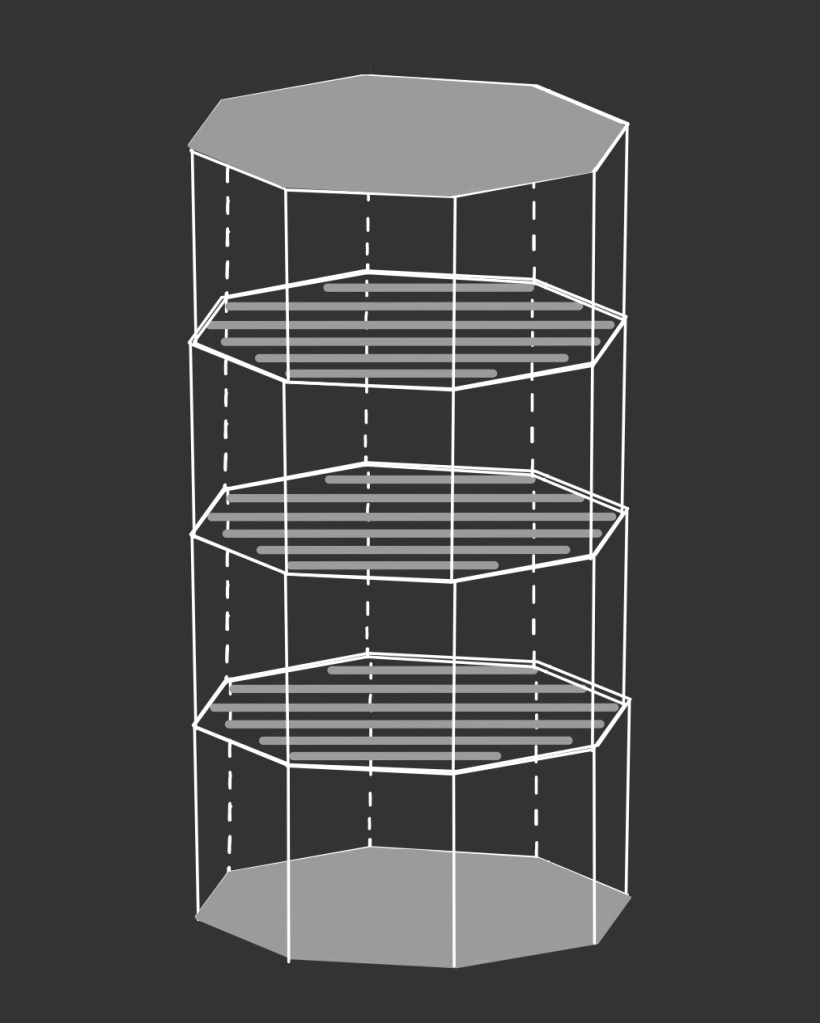 It’s important to note that the octagon area is 1.207 times (or 20.7%) larger than the square area, which has greater efficiency than any rectangle. In fact, most current research is conducted in rectangle shaped buildings. Something we aim to change.